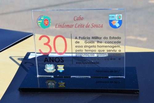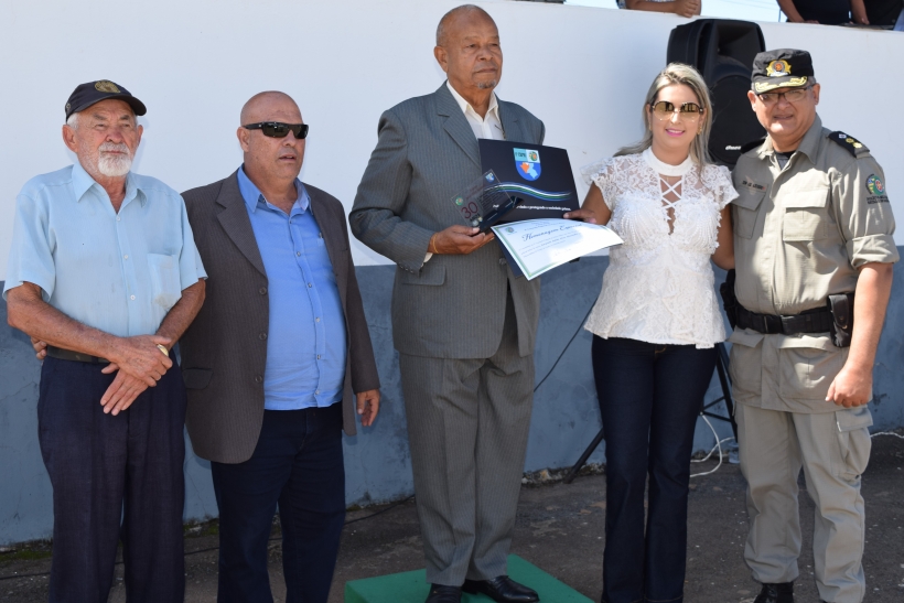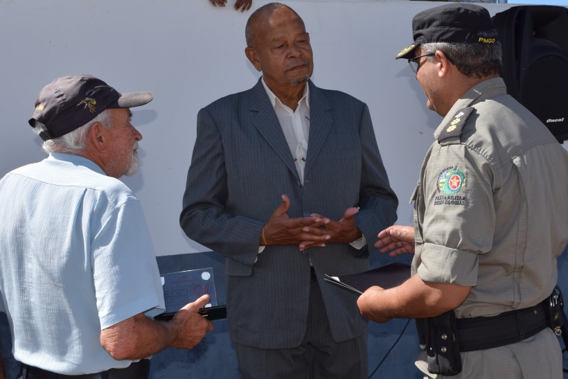 Dessa vez o Sargento José Pessoa de Melo, 83 anos, conhecido por Sargento Gabiroba e reformado desde 1984, pode entregar a homenagem a outro decano da PM na região do entorno: o Sargento Julião. Este ficou muito feliz em receber das mãos de seu contemporâneo o diploma de reconhecimento pelos serviços prestados à sociedade goiana.