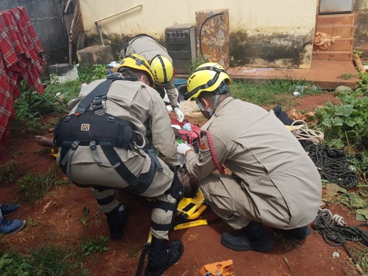 Bombeiros Militares de Itaberaí resgatam vítima de queda em poço