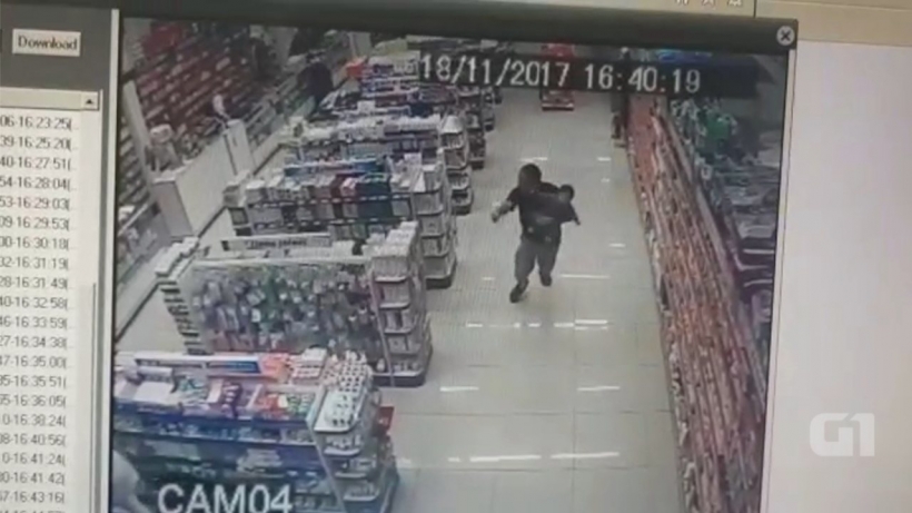 Com filho no colo, PM de folga reage a assalto e mata ladrões em farmácia